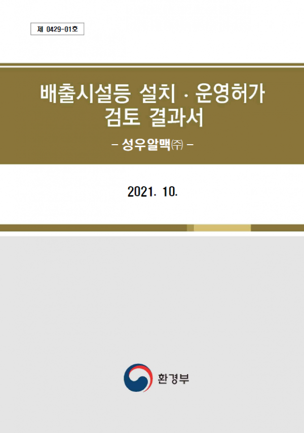 [통합환경 최초허가] 비철_성우알맥(주) 허가 완료