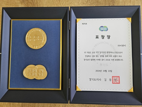 2024년 10월 23일 경기도 우수 환경서비스기업으로 선정되었습니다.